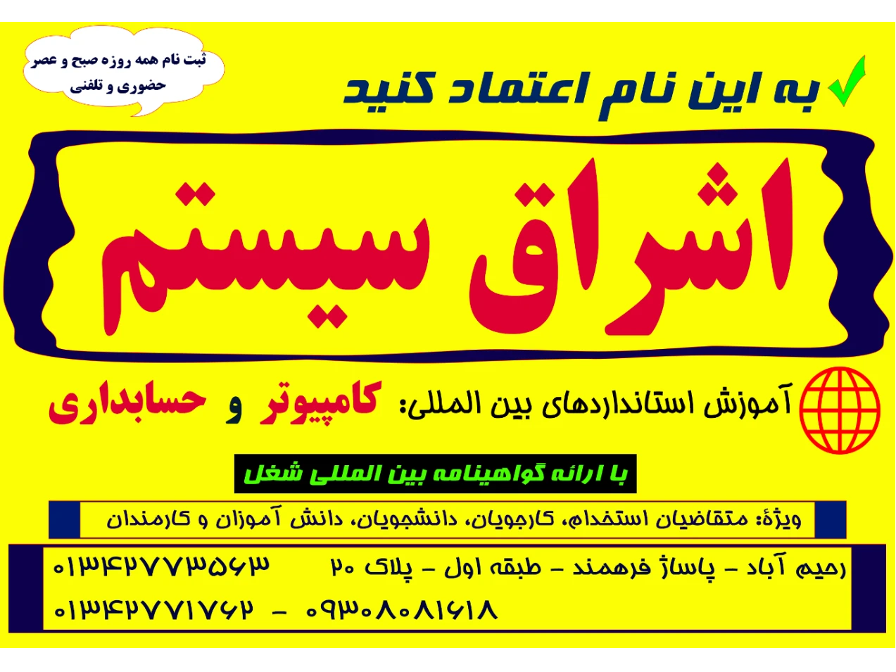 برخی گواهینامه های درآمدزا که در اشراق سیستم می توانید دریافت کنید:گواهینامه بین المللی ICDLبرنامه نویسی #C و پایتونبرنامه نویسی ++C و جاوابرنامه نویسی بازی های رایانه ایطراحی وبسایتWordpressفتوشاپحسابداری مالیHoloo